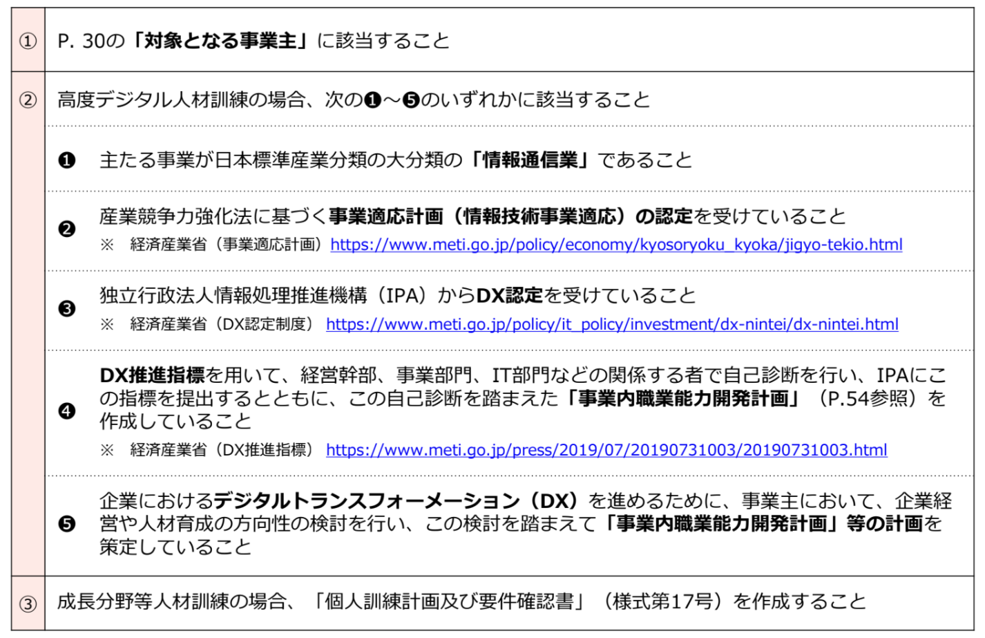 前述の「高度デジタル人材訓練」の事業主の要件と同じです。
